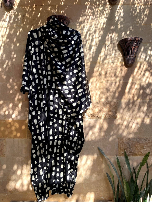 Black White Abstract Dots Prayer Shawl | Bold Khushoo Esdalat